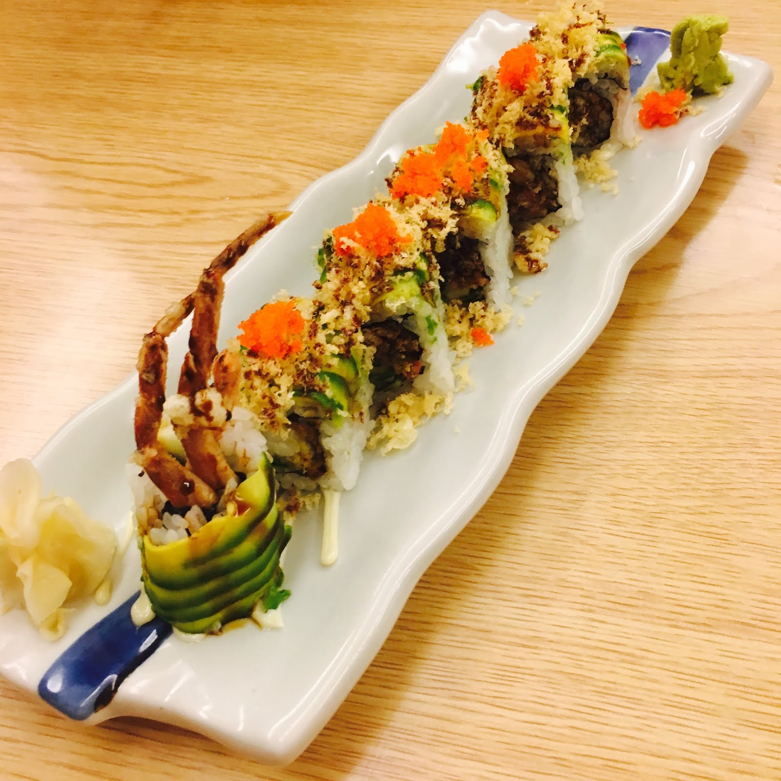 A decent sushi roll wrapped with deep fried soft shell crab.