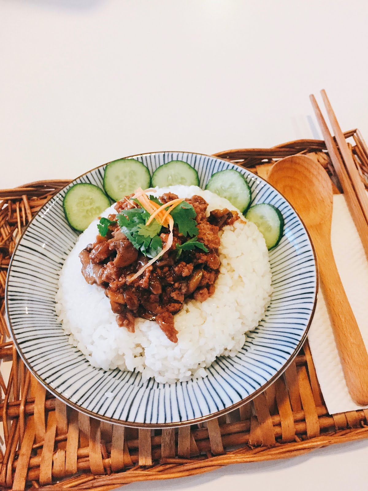 Warm rice topped with braised minced pork and slices of cucumber. The minced pork was nicely braised and rich in flavour.