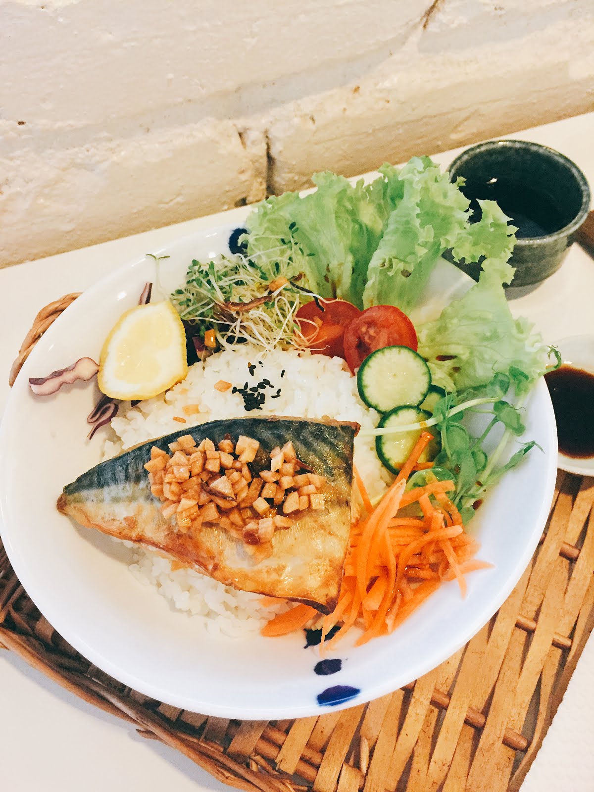 The saba fish was grilled to perfection and topped with cripsy fried shallots. Served with a bowl of warm rice, coral lettuce, cucumber, carrot slices, tomatoes, alfafa sprouts and lemon wedge. Hearty meal with the feeling of home.