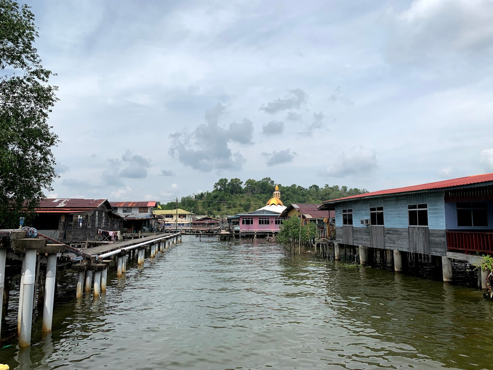 The floating village stretches across the Brunei River in Bandar Seri Begawan, housing approximately 13,000 residents.