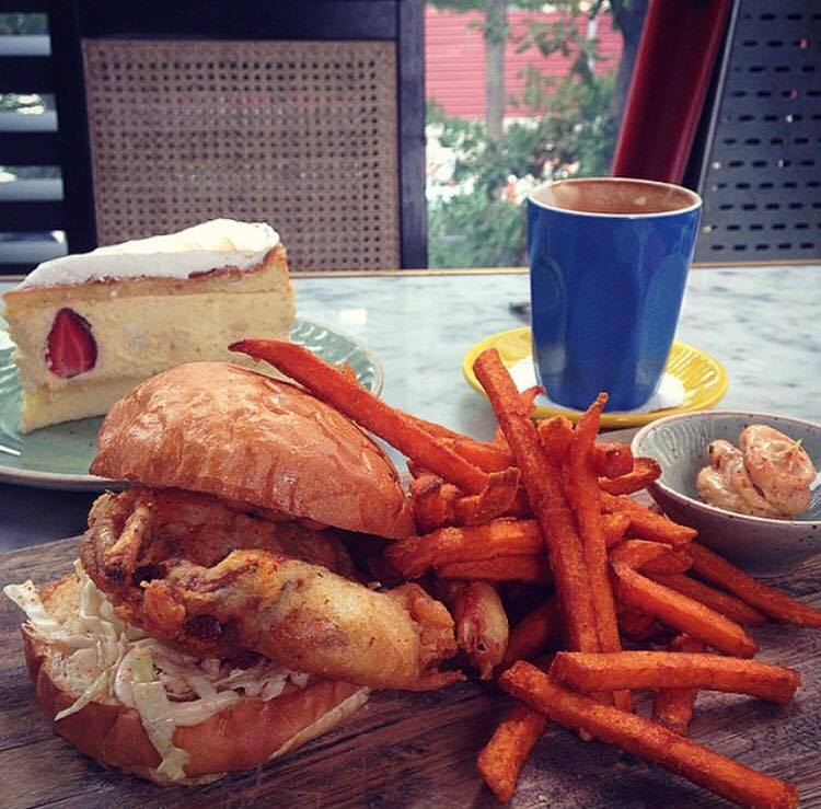With Asian coleslaw, spicy mayonnaise and sweet potato fries. It is a must try as you can hardly get a soft shell crab burger right 😛 A soft shell crab fan should really try this! It is delightful and the sweet potato fries were really good!