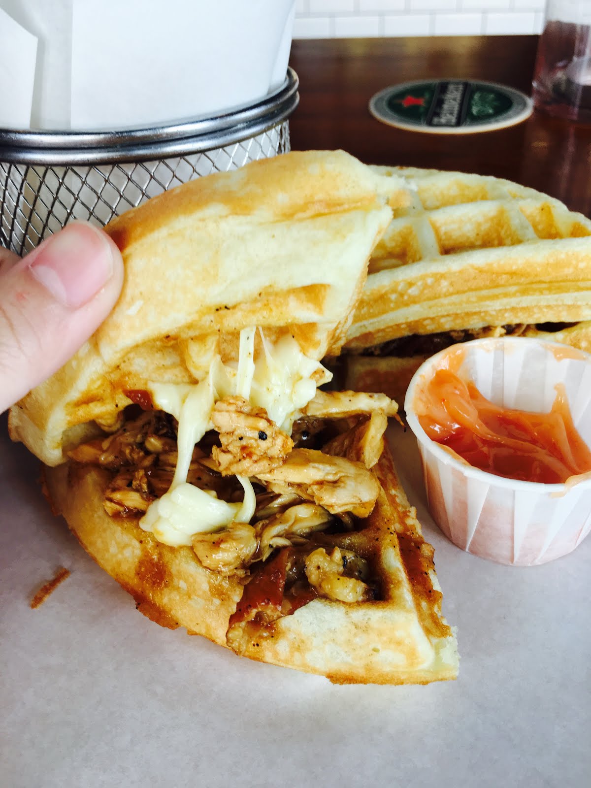 Waffles was a dissapointment, overly chewly, dense, and too thick. Despite that, the bbq chicken was full in flavour and tender.