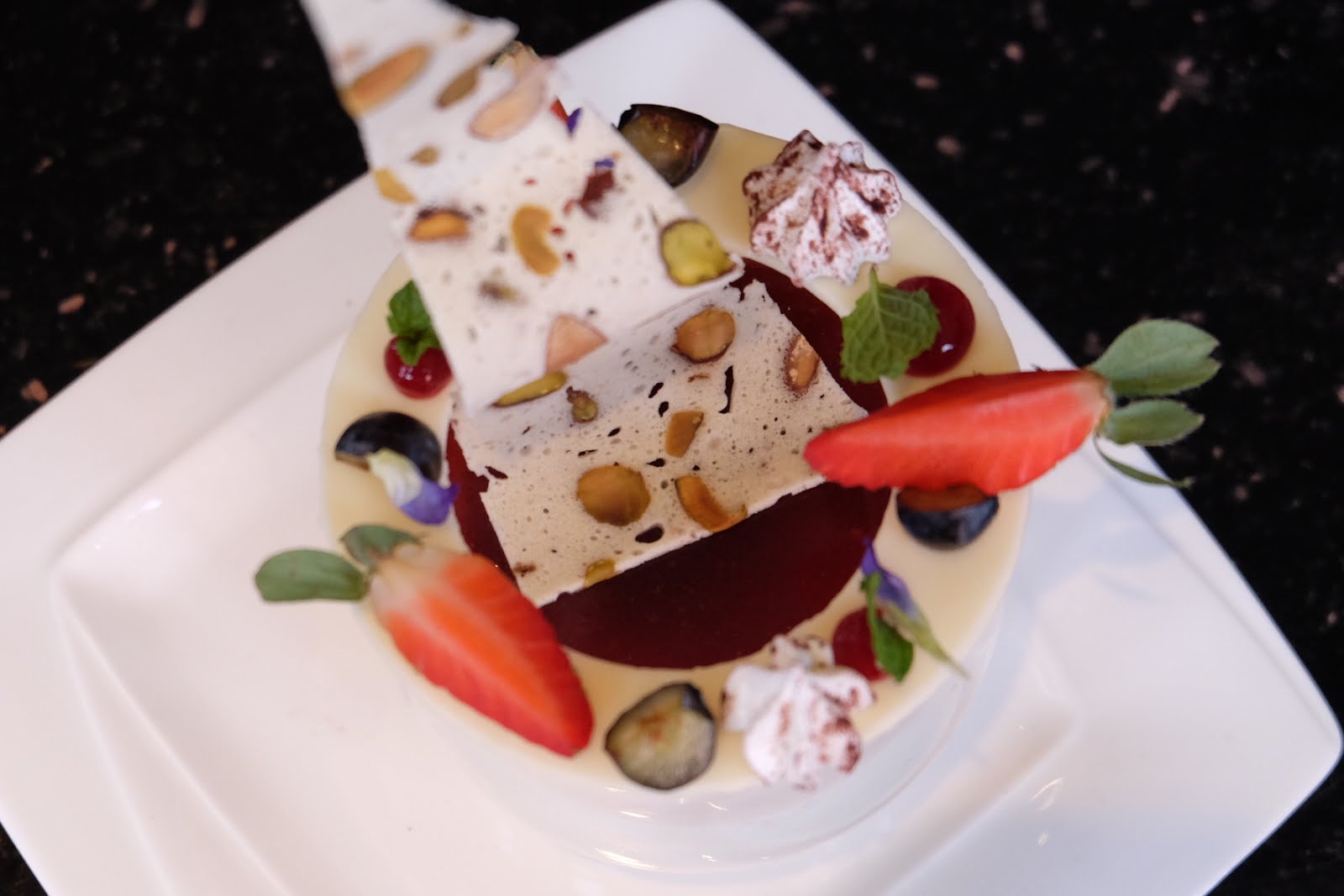 Strawberry jelly, crepes skin, layered strawberry, lychee mousse too sweet (white choc & strawberry jelly which hardens up into a thick lump) for my liking, also the acidity from berries helped in balancing the sweetness. The consistency could be smoother for a better mouthfeel.
