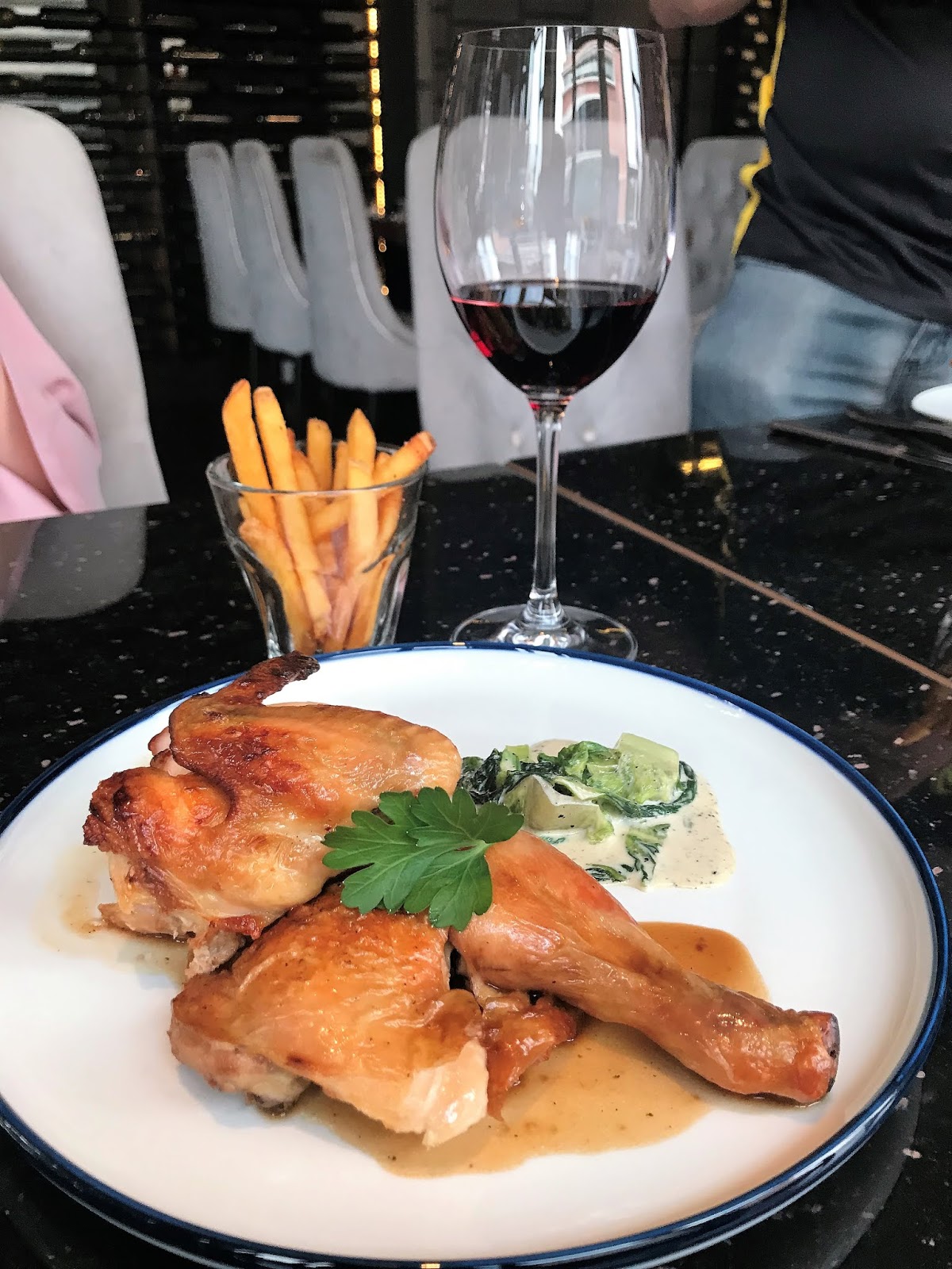 A smaller chicken was used in this dish which promises tenderness. Brined in a brining solution for 12 hours, followed by sous vide cooking to lock in the juices. Served with french fries and creamed bok choy. The chicken was well brined. French fries on the side was amazingly crispy and salted.