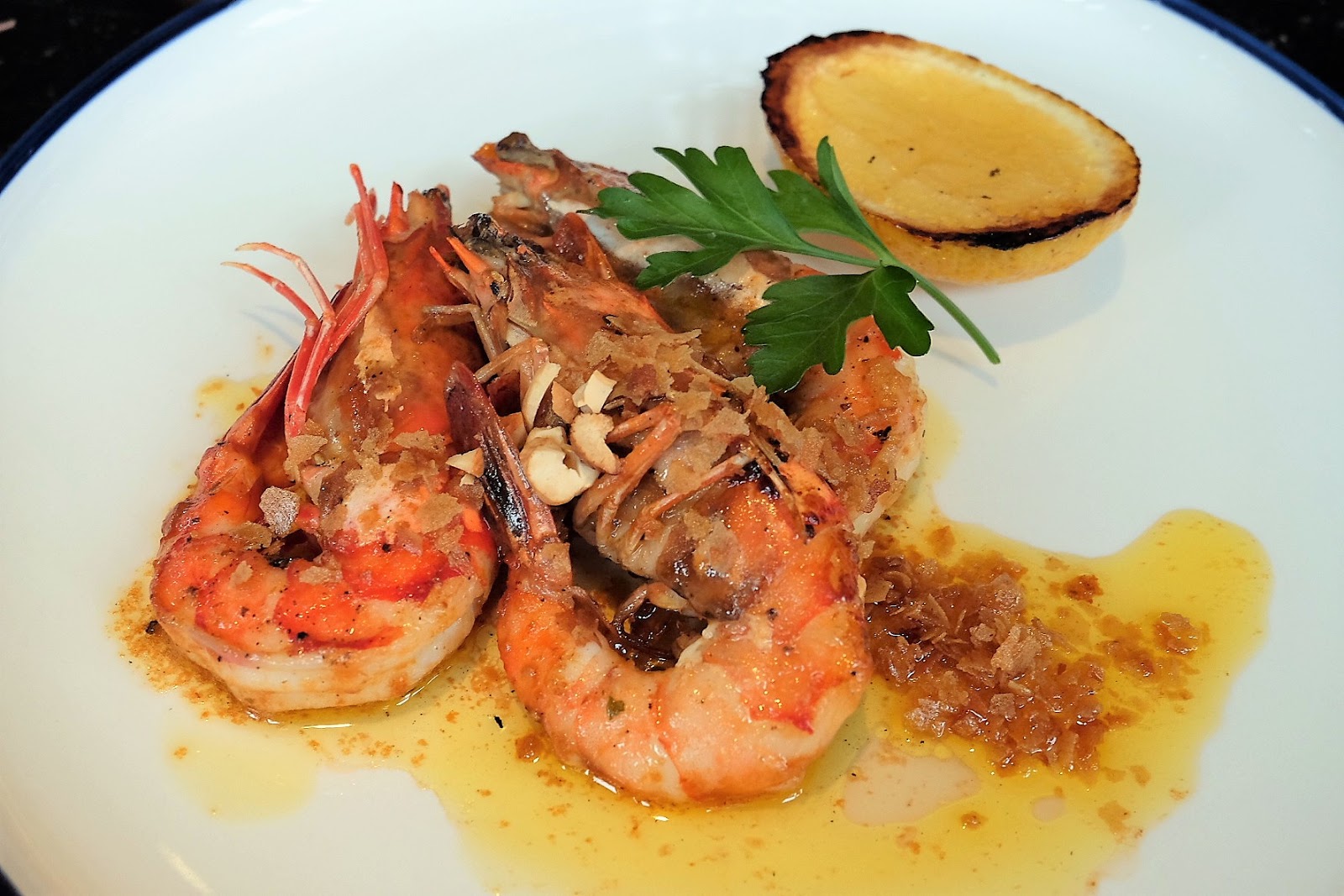 Huge tiger prawns grilled to a stunning bright red colour, served with burnt lemon on the side. A type of cereal, Nestum, was added to the dish which brings back childhood nostalgia. The shell of prawns were peeled which gain brownie points from me as I could just dig in right away. The flavour of this dish was spot on and was made even better with the pairing white wine.