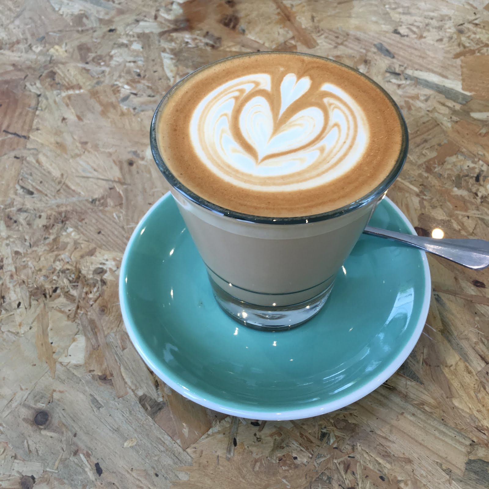 Coffee and waffles is always a great match. The latte art certainly brightens up my day. However, this could do with less milk.