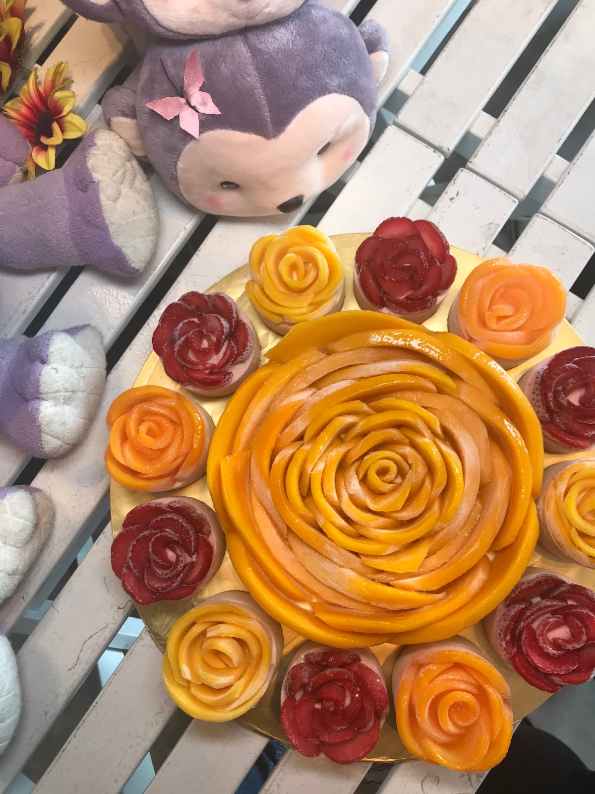 Deliciously sweet mango lovingly hand-sliced and topped on a sinfully good cheesecake.