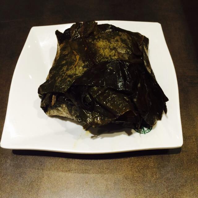 It is really different as it is wrapped in a lotus leaf in a traditional style.