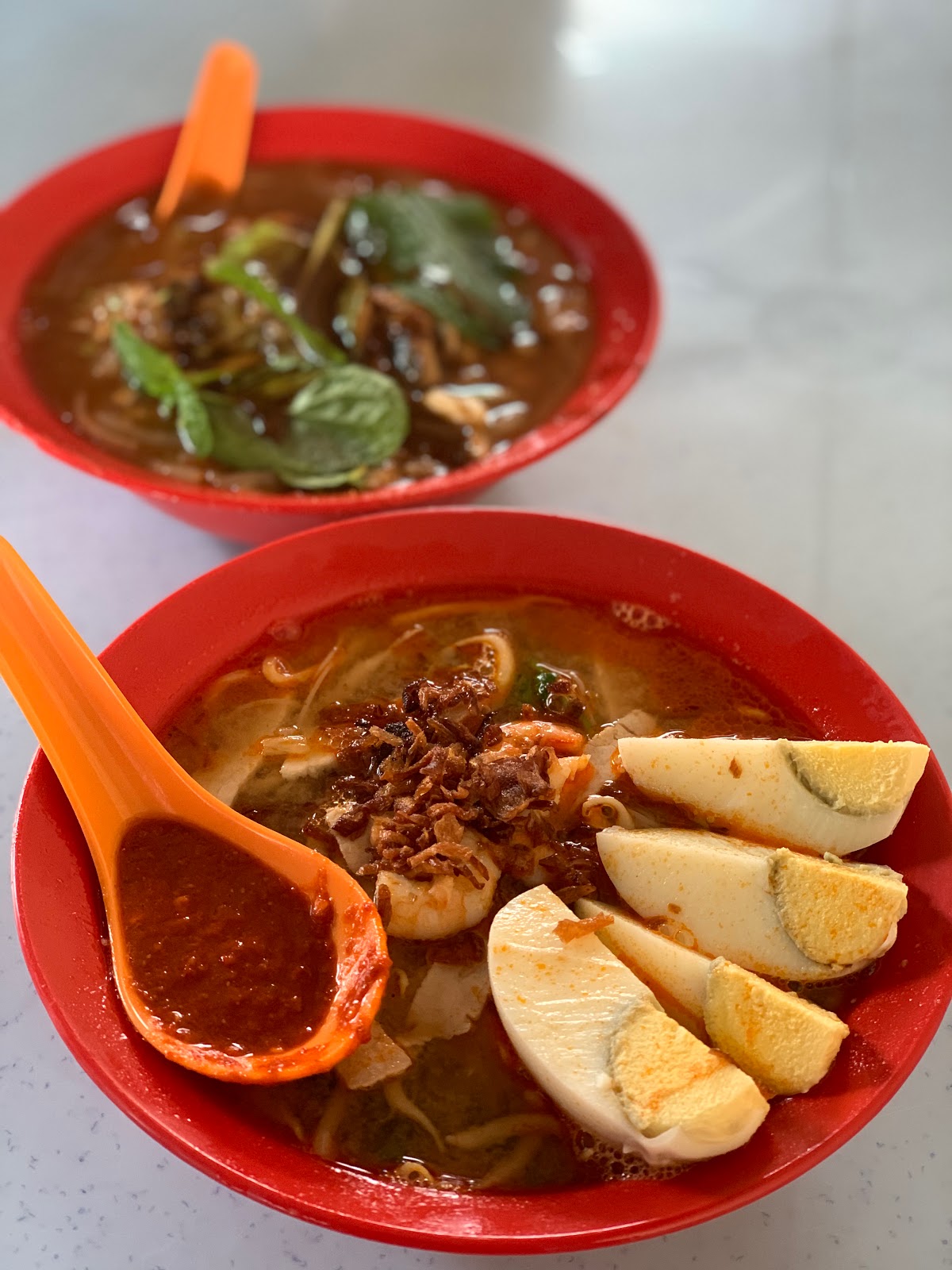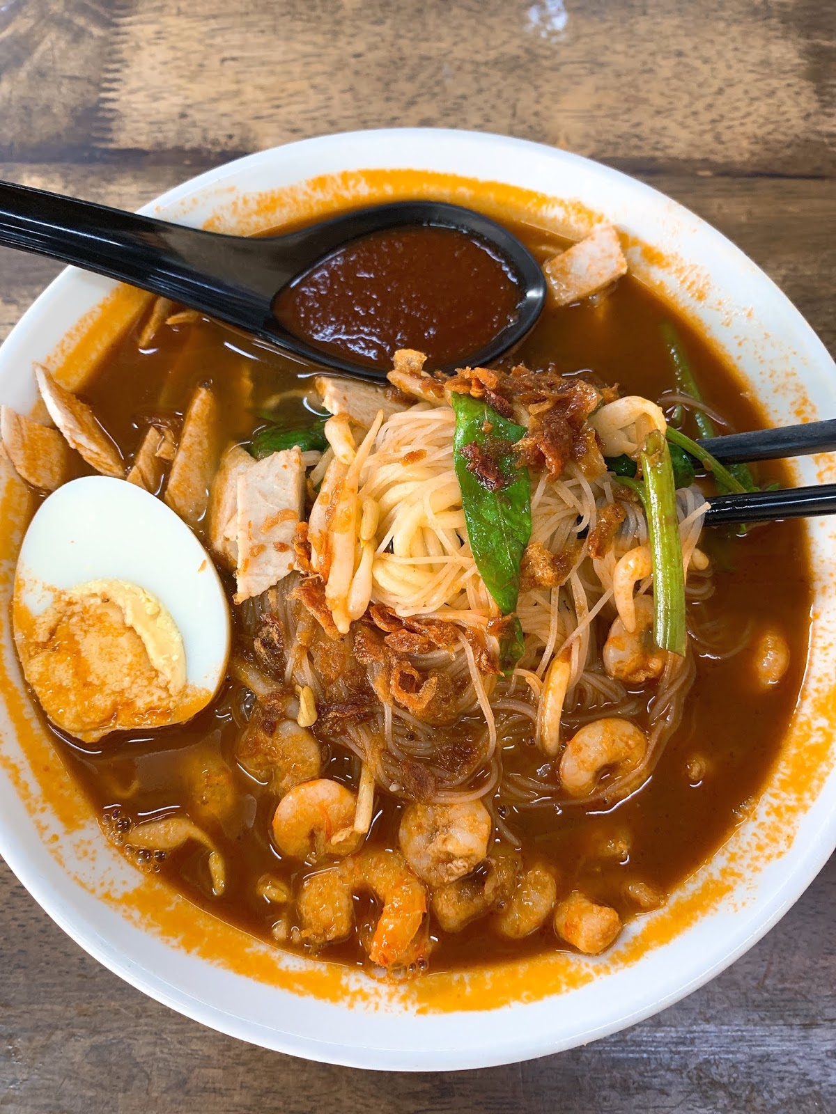 One of the better prawn noodles in town. Amazing deep flavoured broth with a selection of fillings including ribs, pork belly and mantis prawns.