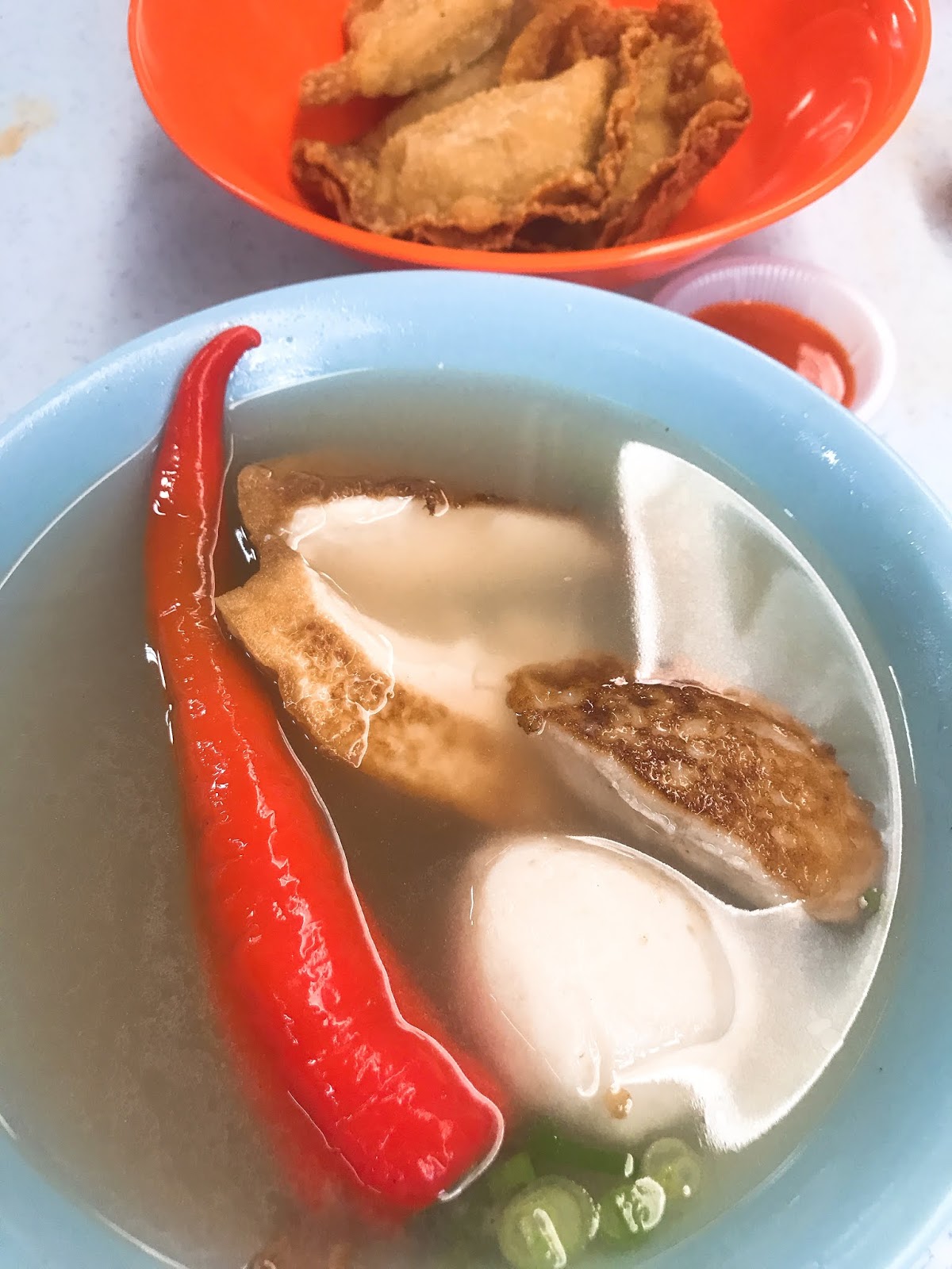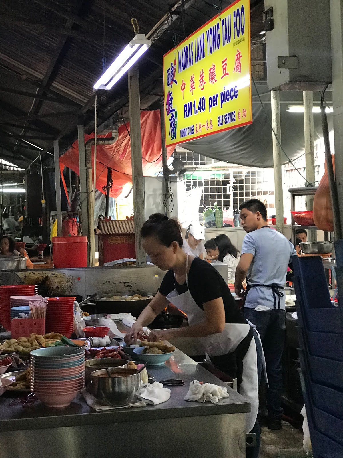 This stall only opens at night and is located at the car park lot between Jalan Imbi and Jalan Barat. What’s amazing here is that they use fish stock for their Yong tau foo soup and they also have really good fried dumplings!