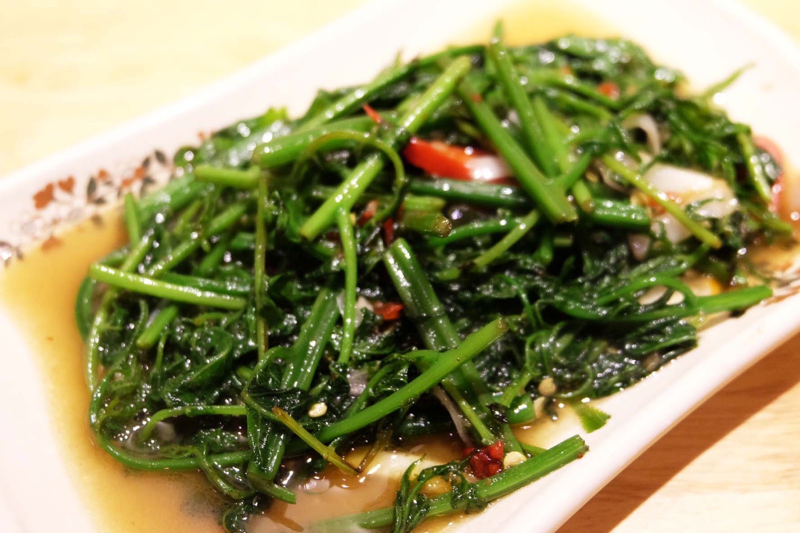 Stir Fry Kangkung in Thai belacan sauce or Thai oyster sauce.