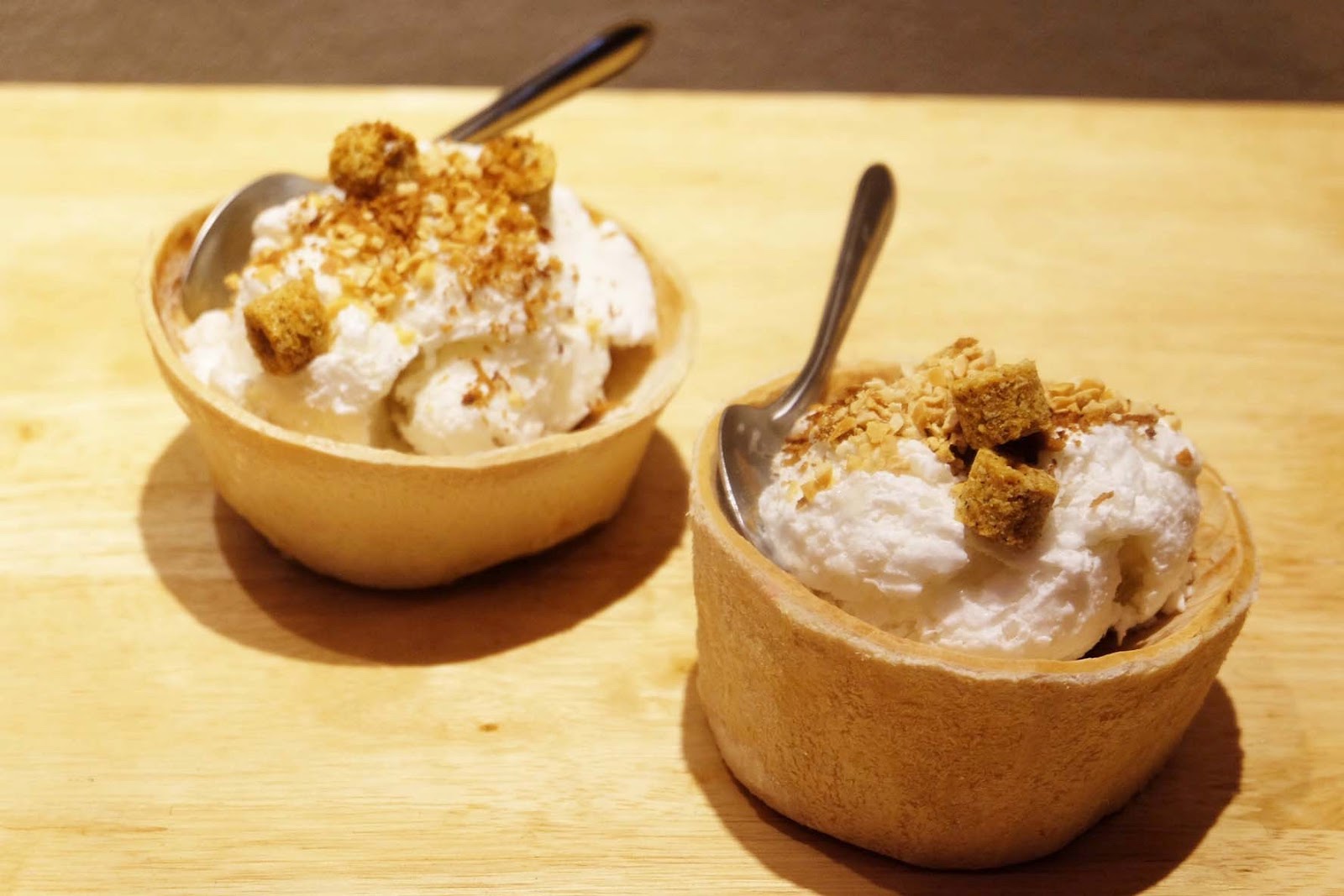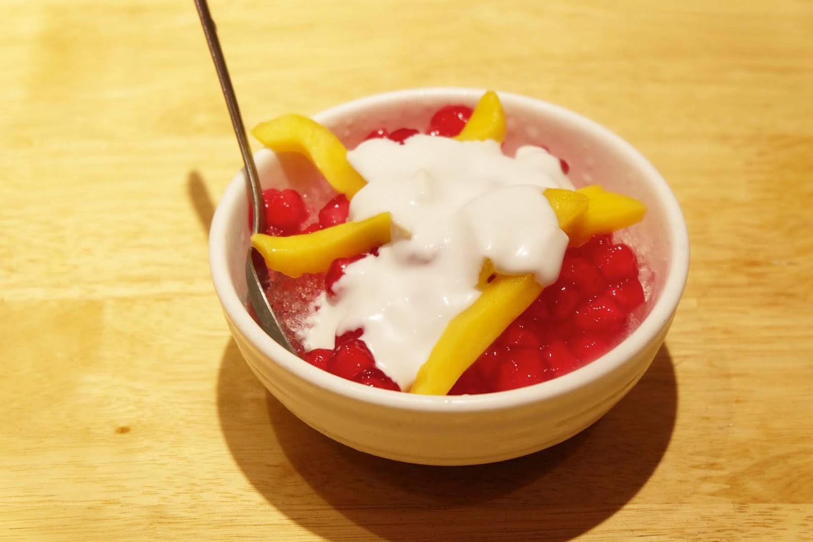 Water chestnut served with honey jackfruit, crushed ice and coconut cream.