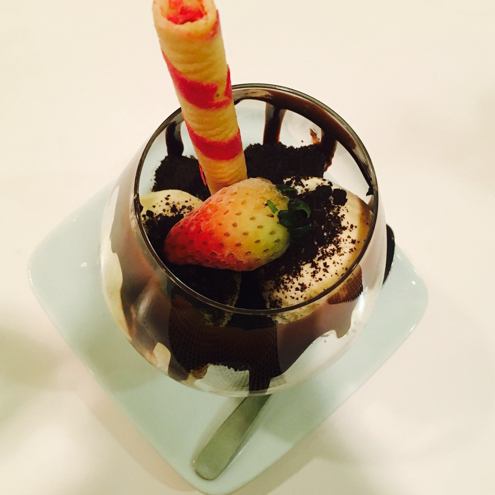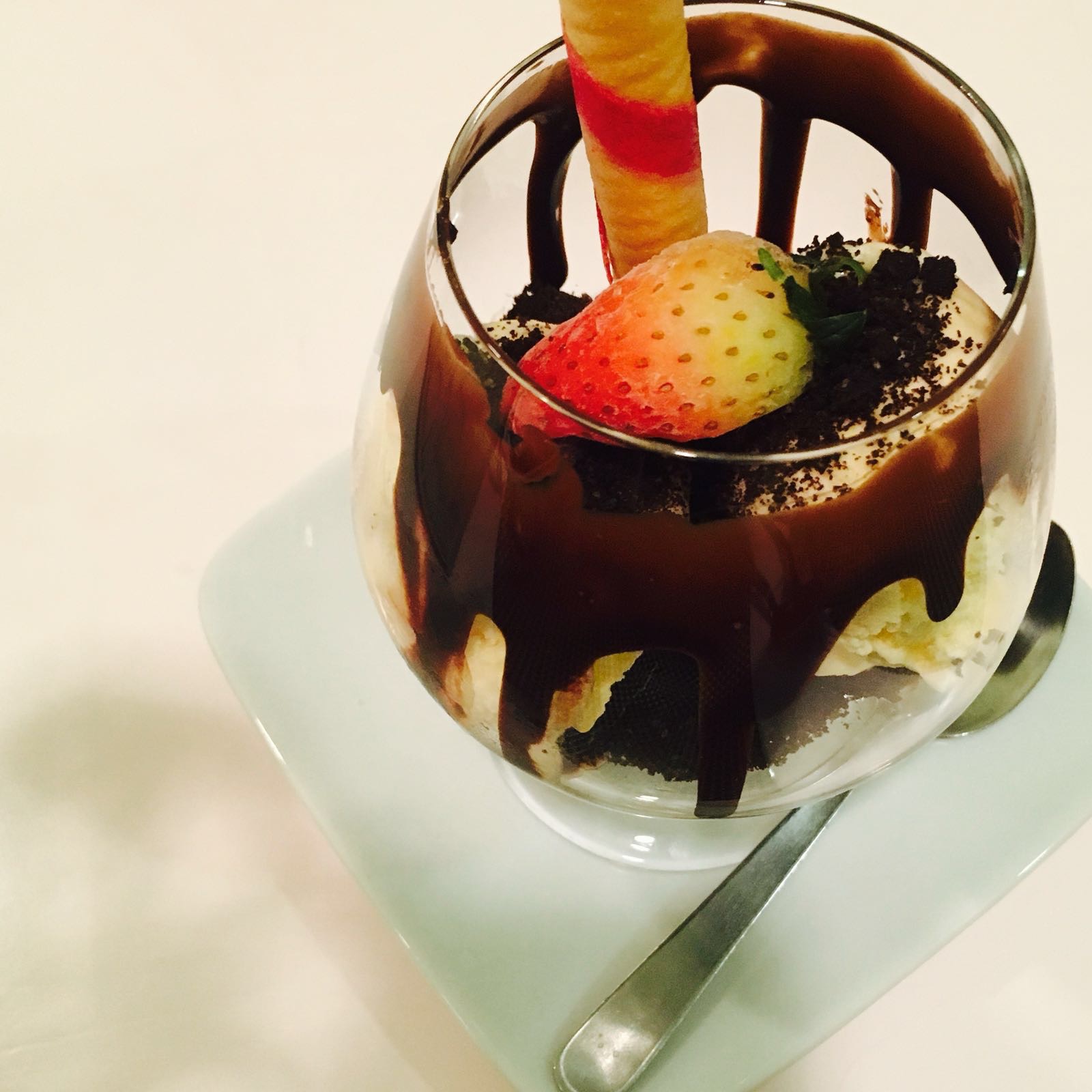 Chocolate fudge served with oreo soiled, scoop of vanilla ice cream served with love letter waffle stick. Well, who doesnt love chocolate right? The chocolate fudge at the bottom was really rich and moist. A bit of dessert is the perfect way to end a meal!
