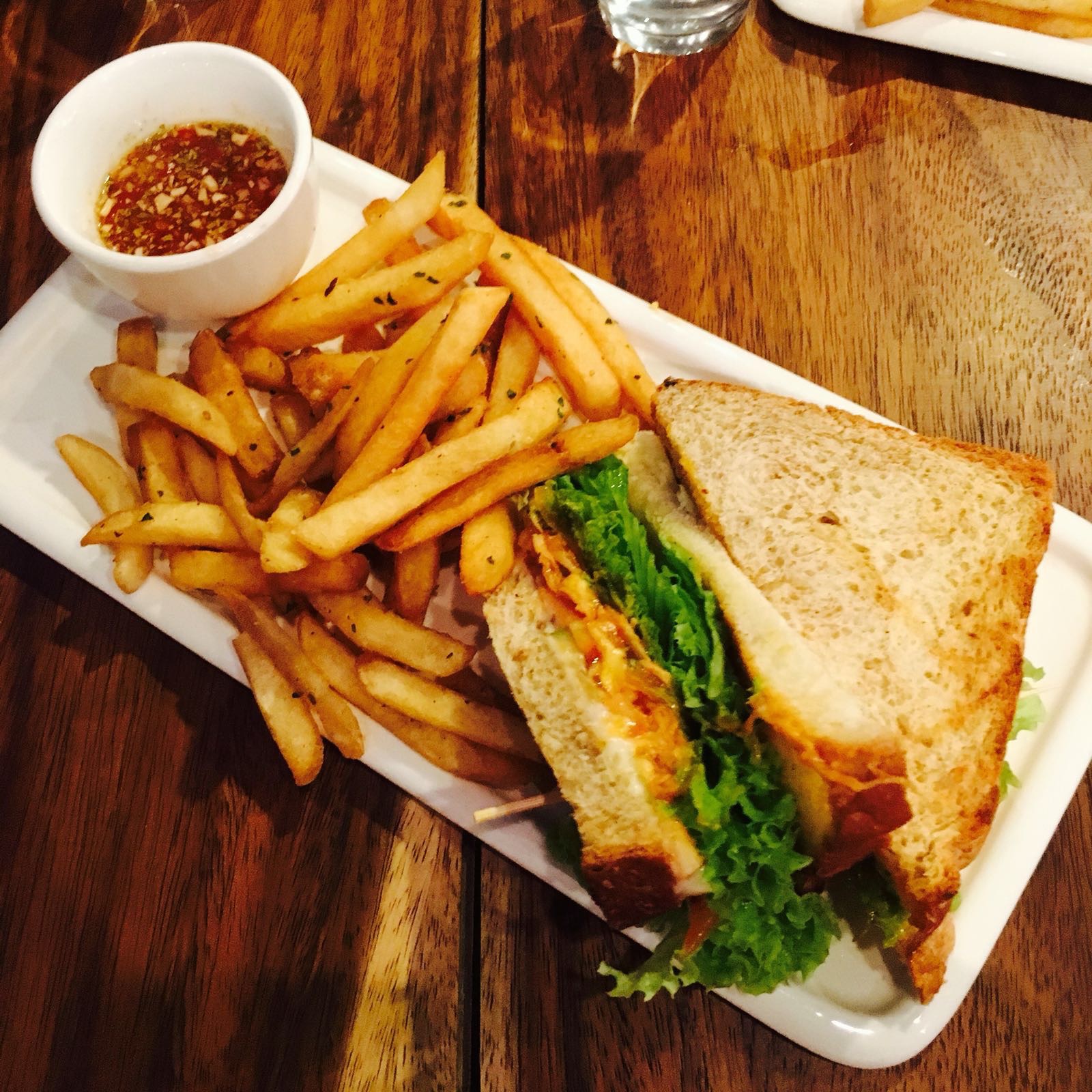 Strips of Chicken Breast cooked in BBQ Sauce that’s used as a filling on a bread topped with hearty greens and French Fries on the side. Sweet and tangy pulled chicken. A healthier meal you could opt for?